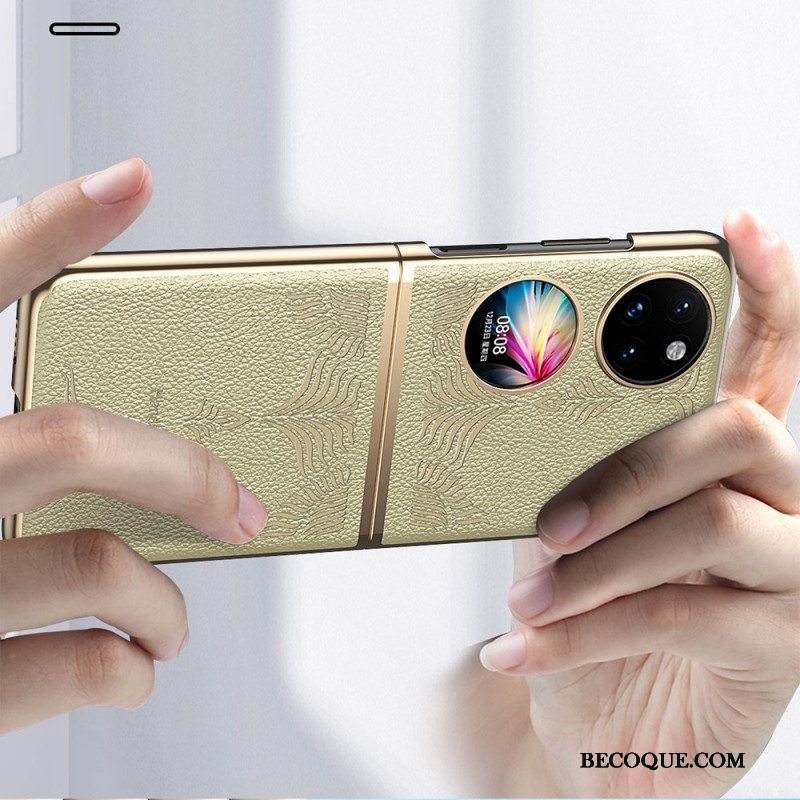 Kuori Huawei P50 Pocket Litsi Tekonahkaa