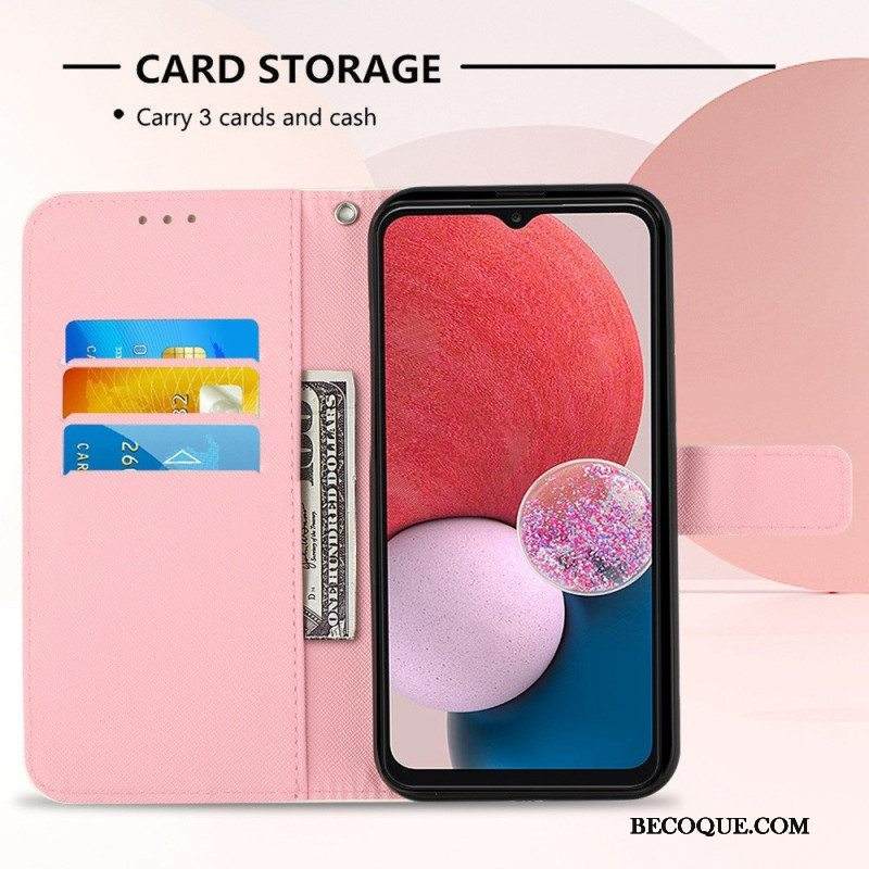 Case Nahkakotelo Samsung Galaxy A13 Suojaketju Kuori Hihna Poppy