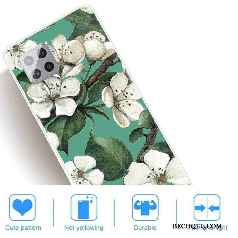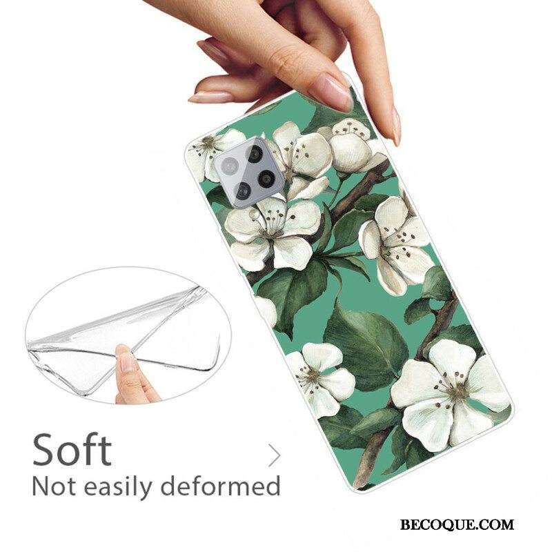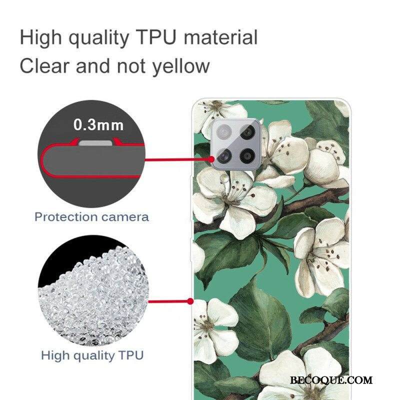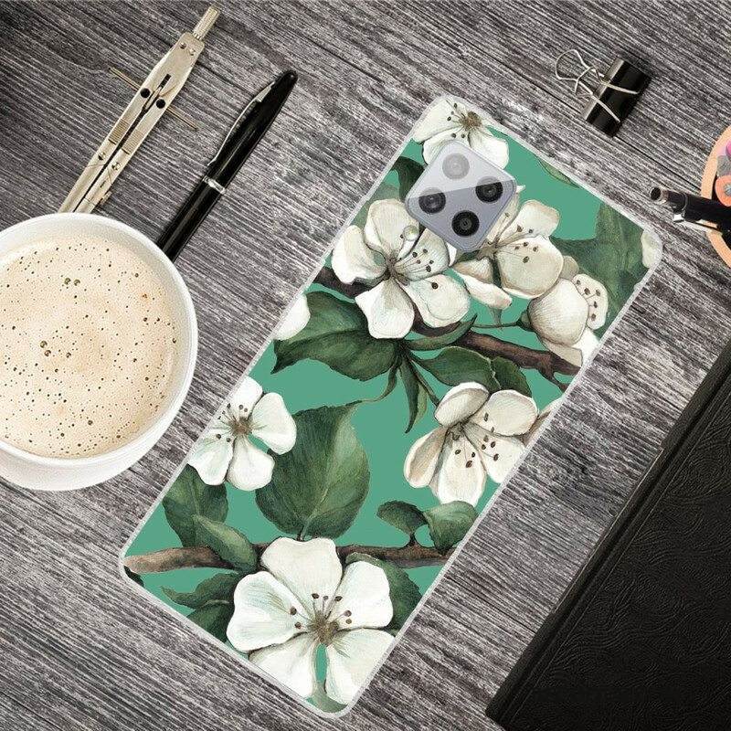Case Samsung Galaxy A42 5G Maalattuja Valkoisia Kukkia