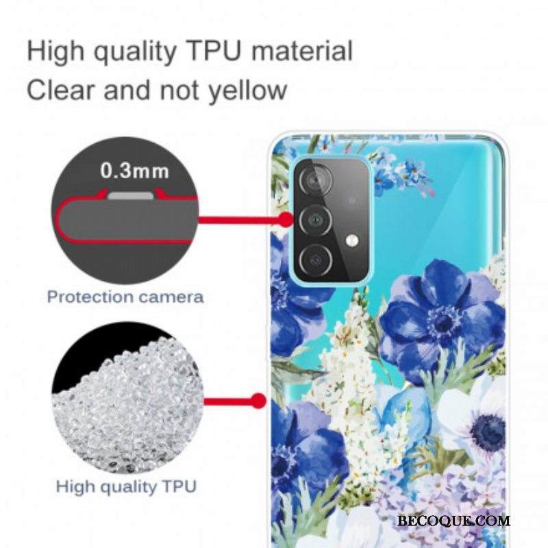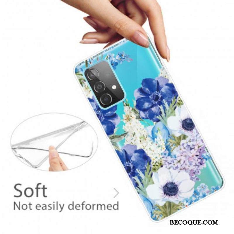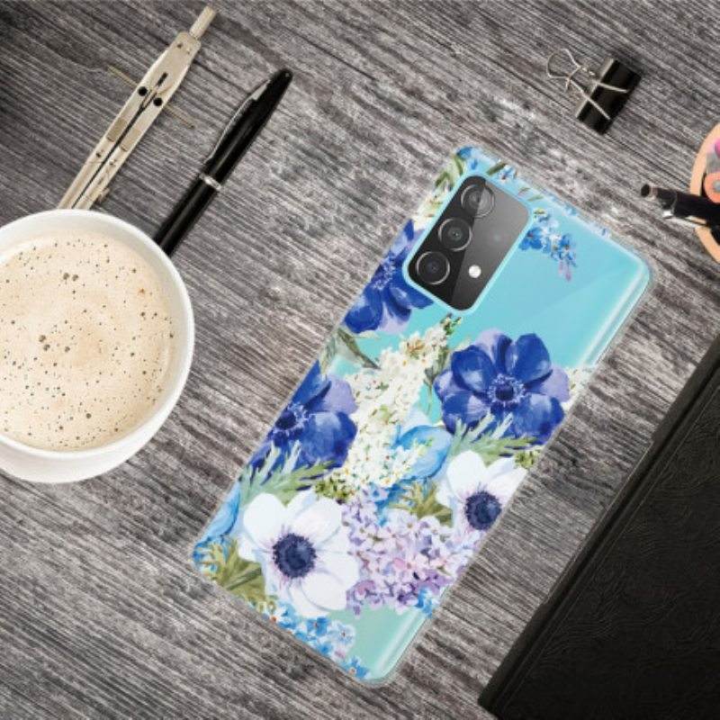 Case Samsung Galaxy A52 4G / A52 5G / A52s 5G Saumaton Akvarelli Siniset Kukat