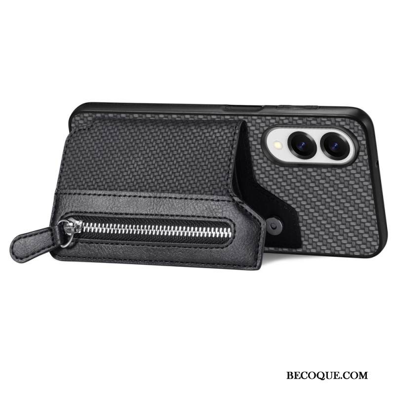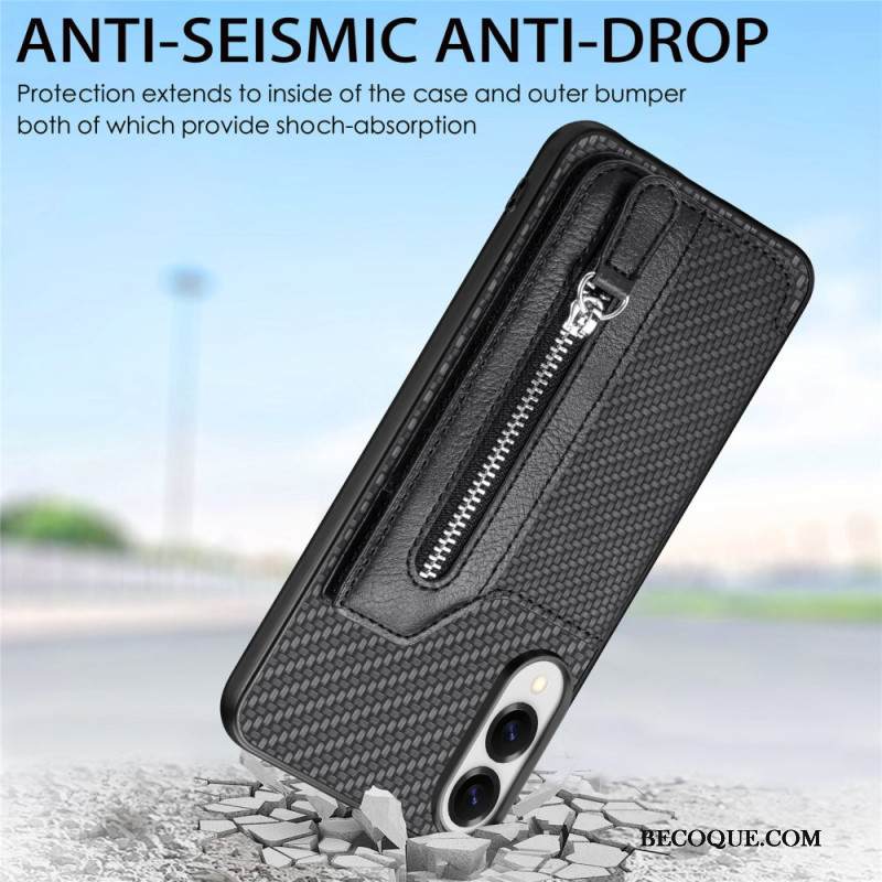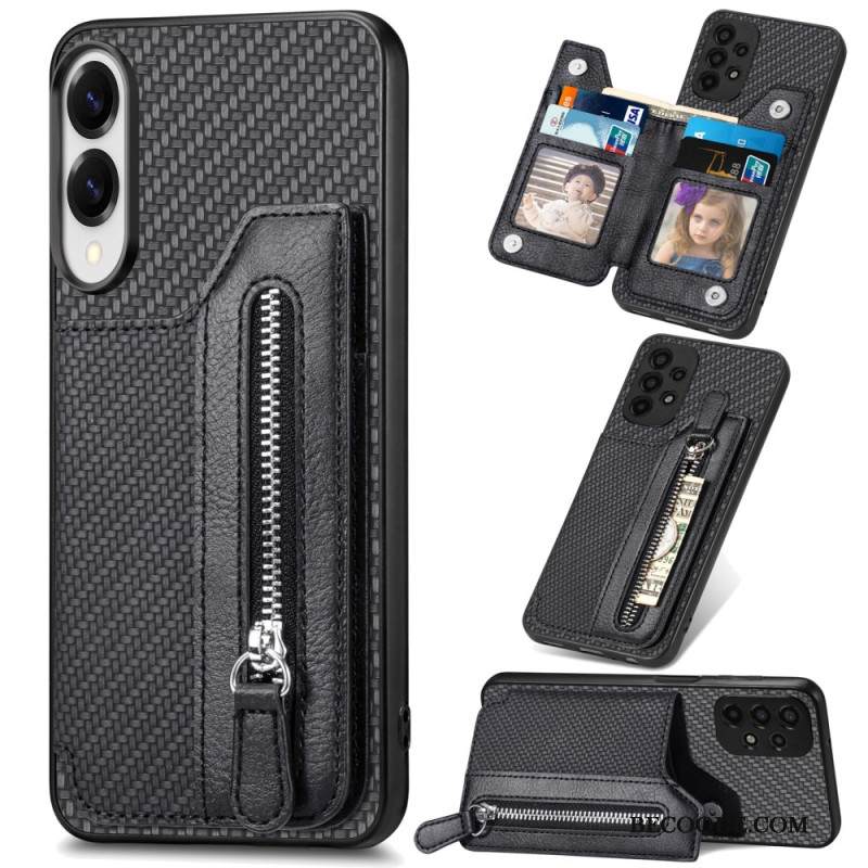 Kuori Samsung Galaxy S25 5g Edge Hiilikuitu Korttikotelolla Ja Hihnalla Varustettu Jalusta Suojakuori