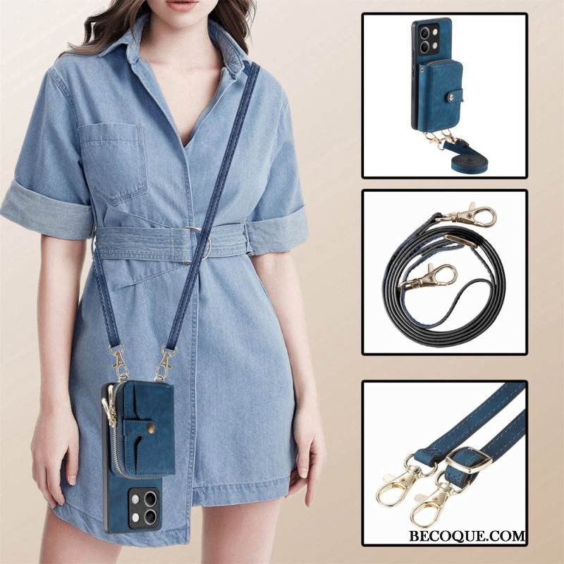 Case Xiaomi Redmi Note 13 5g Puhelinkuoret Retro Vetoketjullisella Taskulla Ja Hihnalla