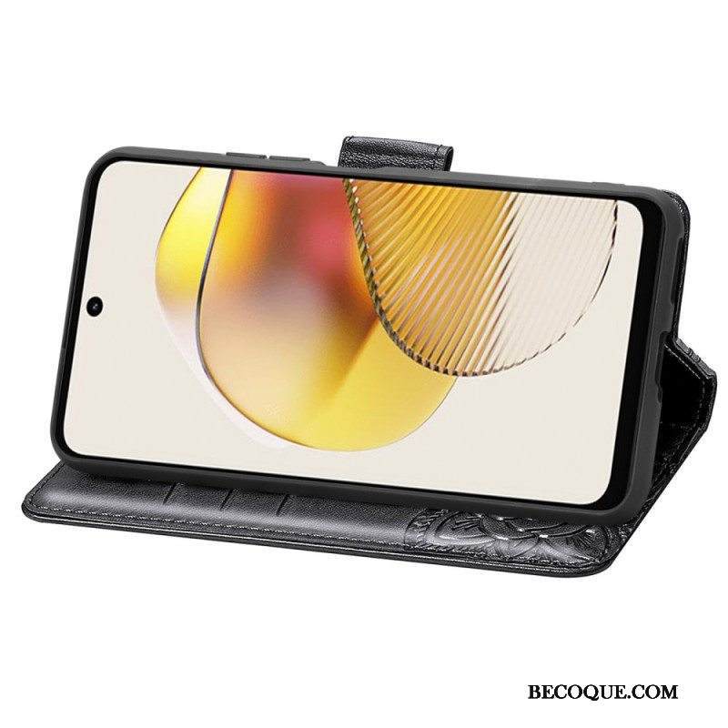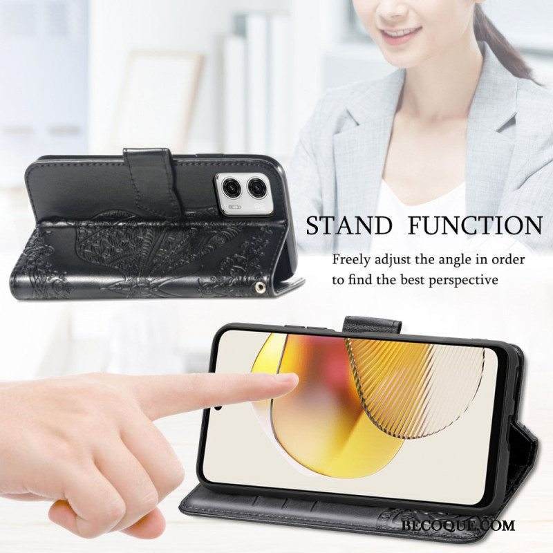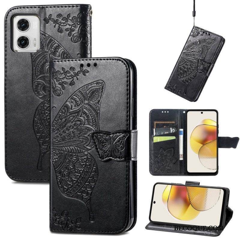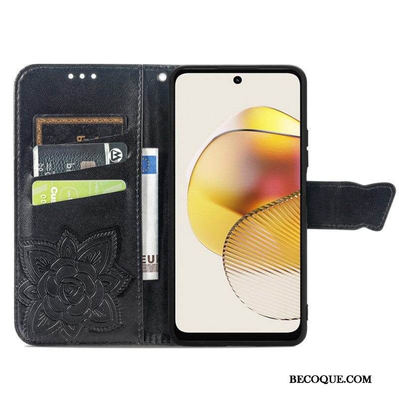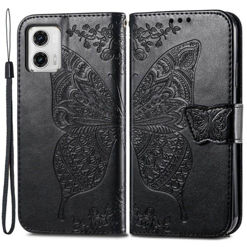 Flip Case Moto G73 5G Suojaketju Kuori Strappy Kukkaperhonen