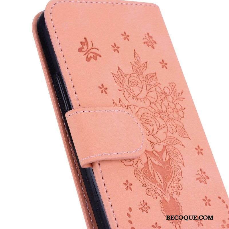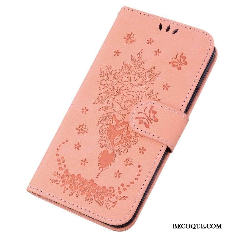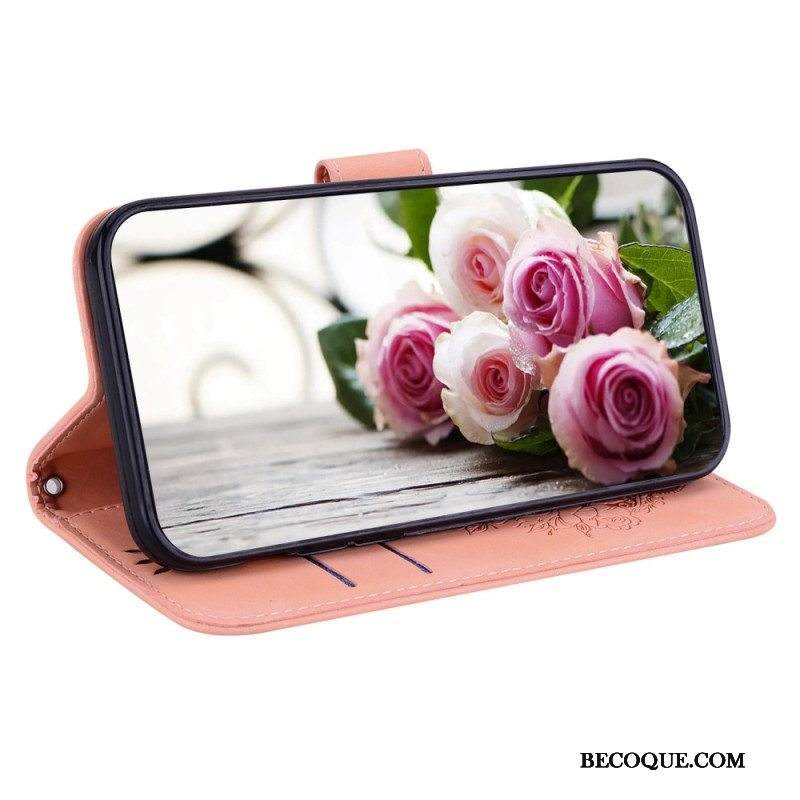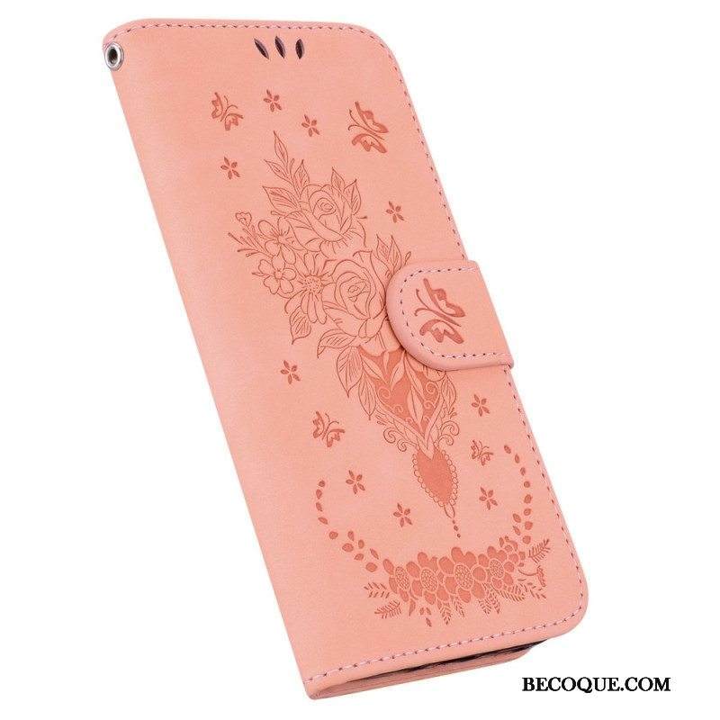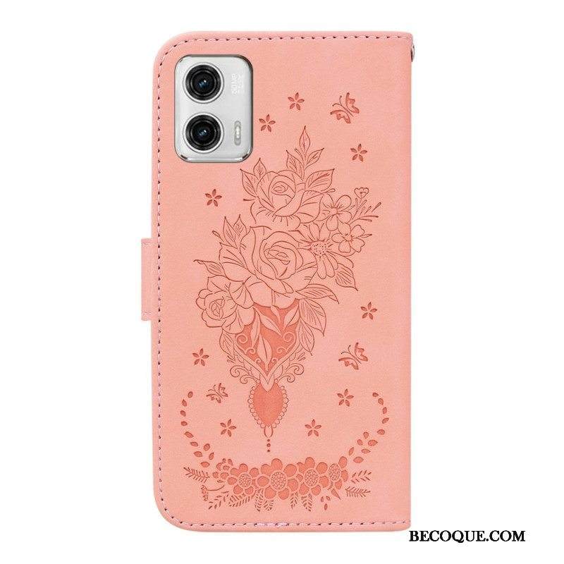Kotelot Moto G73 5G Suojaketju Kuori Strappy Ruusut Ja Perhoset