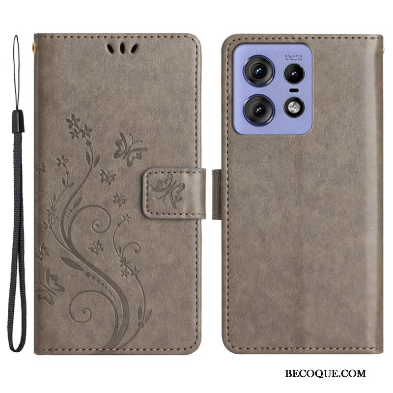 Kotelot Motorola Edge 50 Pro Perhosia Ja Kukkia Hihnalla