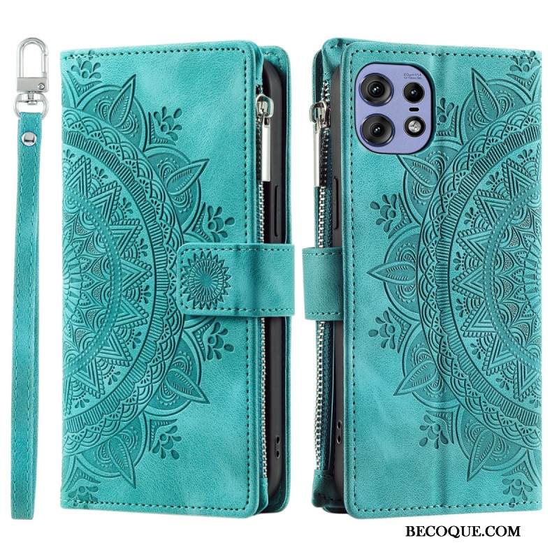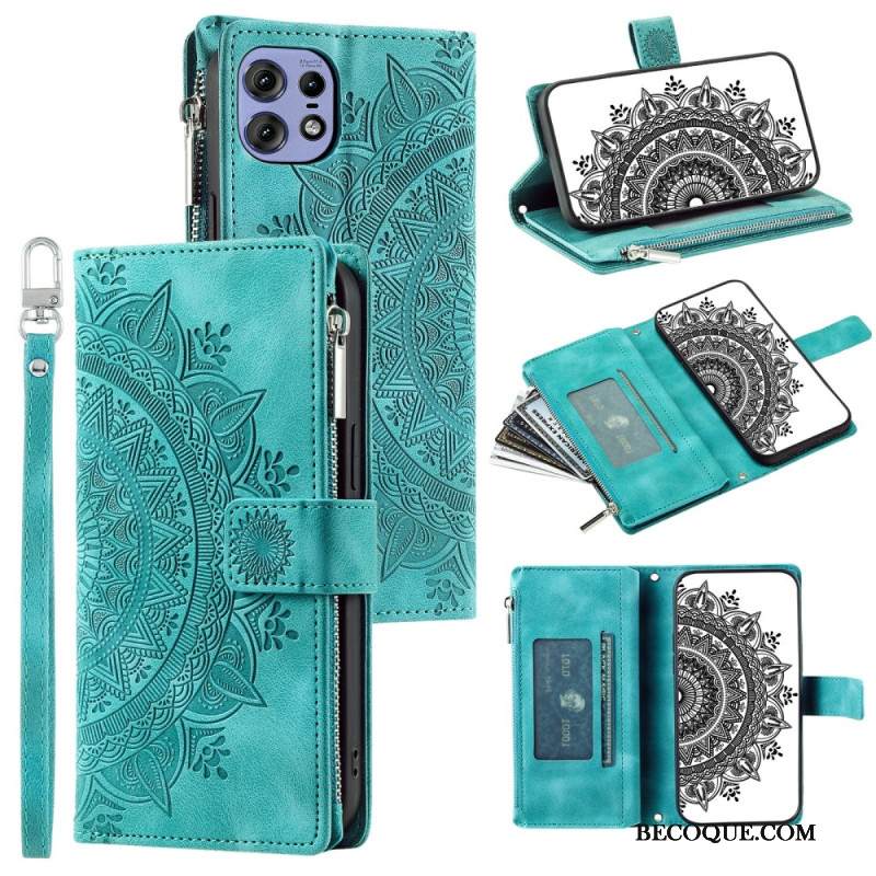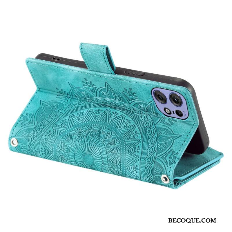 Kotelot Motorola Edge 50 Pro Suede Effect Mandala Hihnalla
