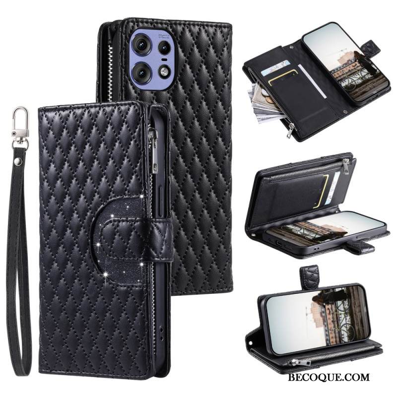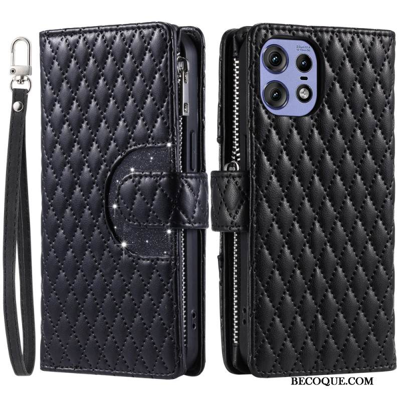 Kotelot Motorola Edge 50 Pro Tikattu Lompakko Hihnalla