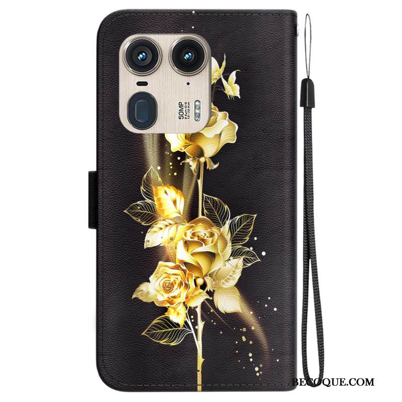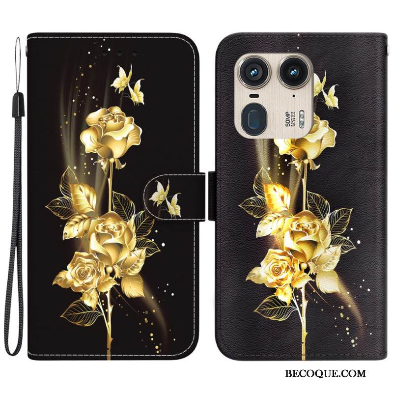 Kotelot Motorola Edge 50 Ultra Puhelinkuoret Kultainen Pioni Hihnalla