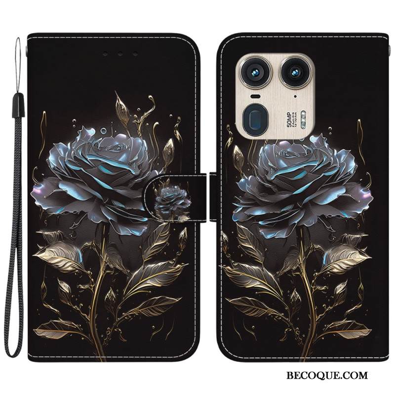 Kotelot Motorola Edge 50 Ultra Musta Ruusu Hihnalla