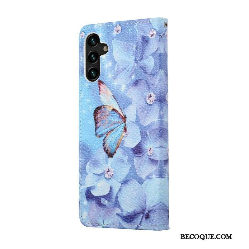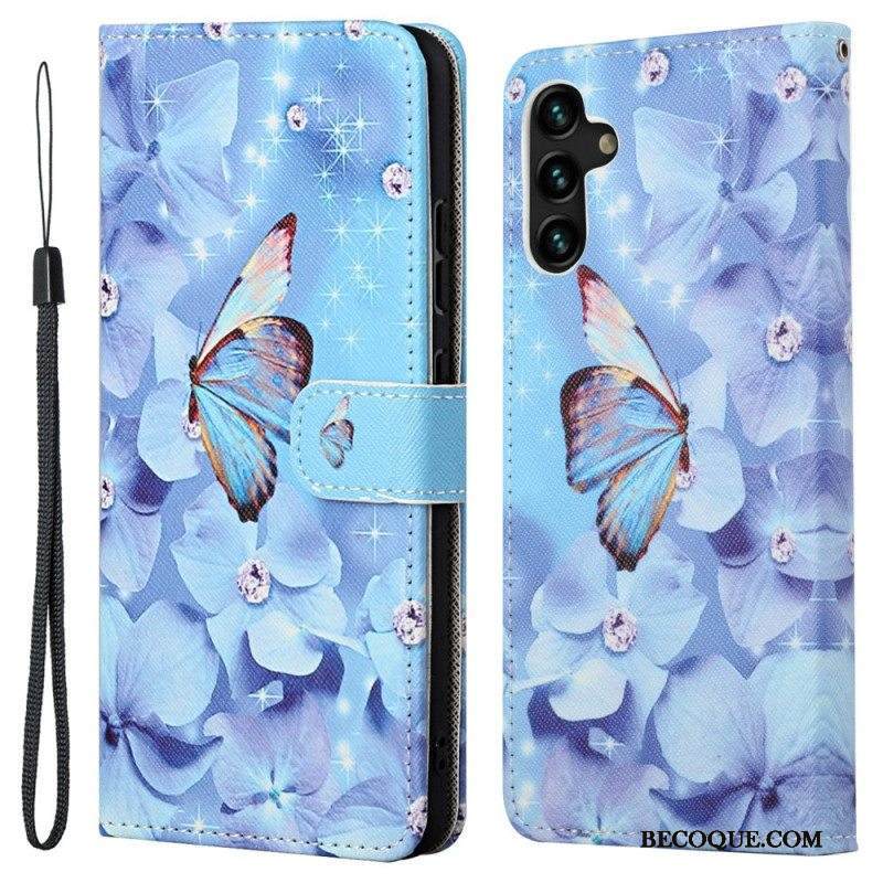 Kotelot Samsung Galaxy A13 5G / A04s Suojaketju Kuori Strappy Diamond Perhoset