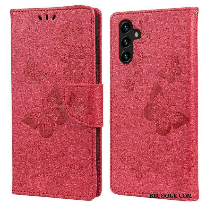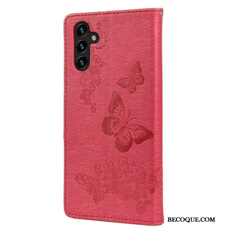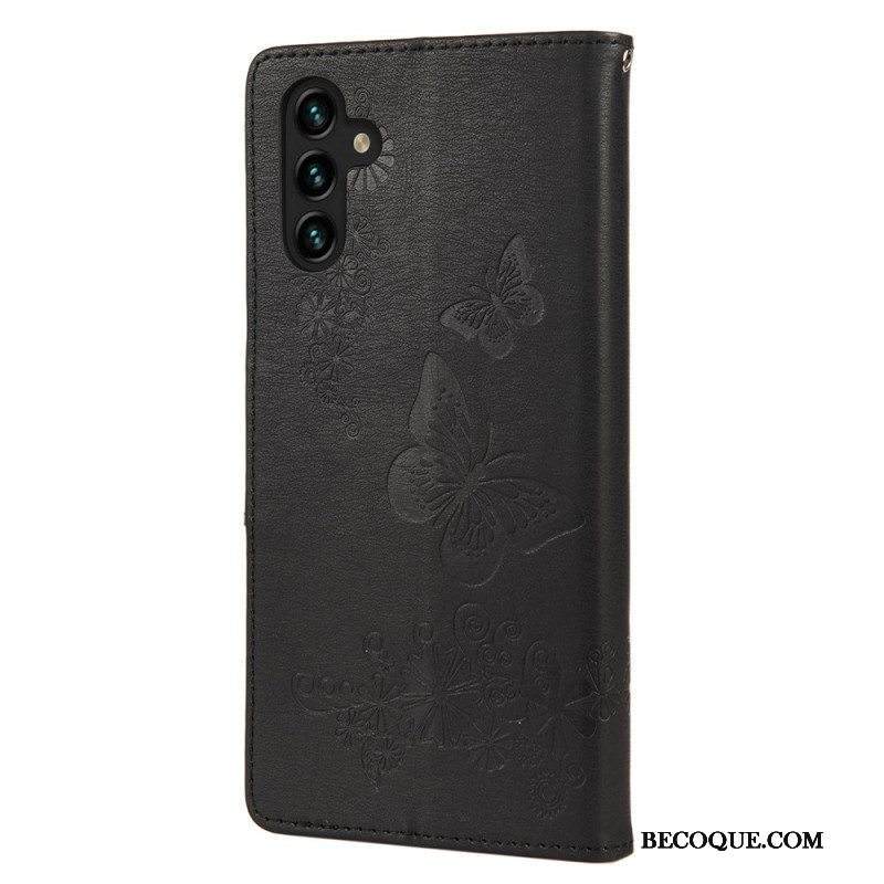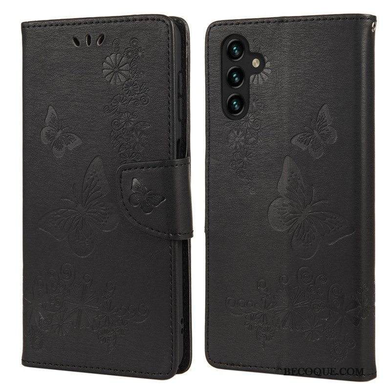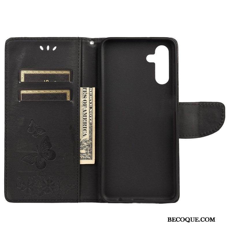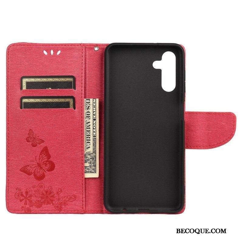 Nahkakotelo Samsung Galaxy A13 5G / A04s Perhosia Ja Kukkia