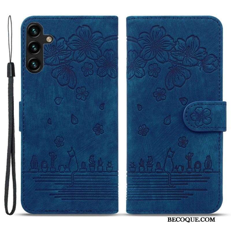 Kotelot Samsung Galaxy A14 / A14 5G Suojaketju Kuori Kukkainen Thong Cat