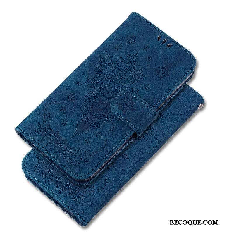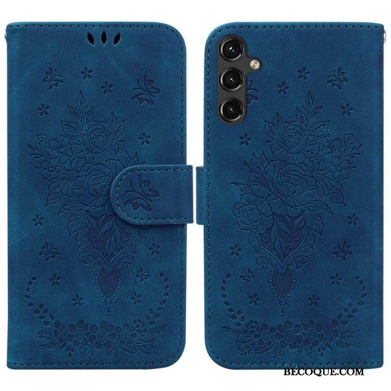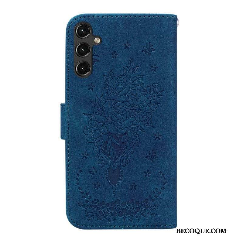Kotelot Samsung Galaxy A14 / A14 5G Suojaketju Kuori Strappy Ruusut Ja Perhoset