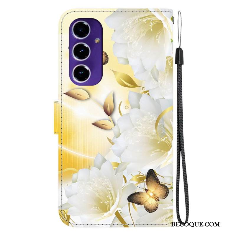 Kotelot Samsung Galaxy A16 5g Kultainen Perhonen Ja Valkoisia Kukkia Suojakuori