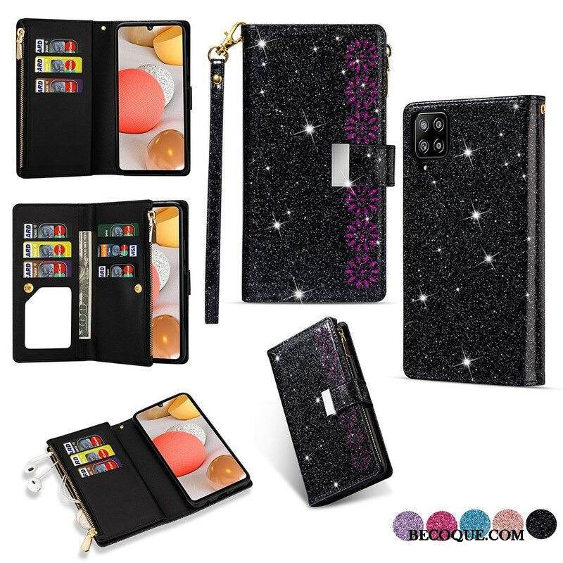 Kotelot Samsung Galaxy A42 5G Lompakkokotelo Paljetteja Vetoketjullinen Lompakko