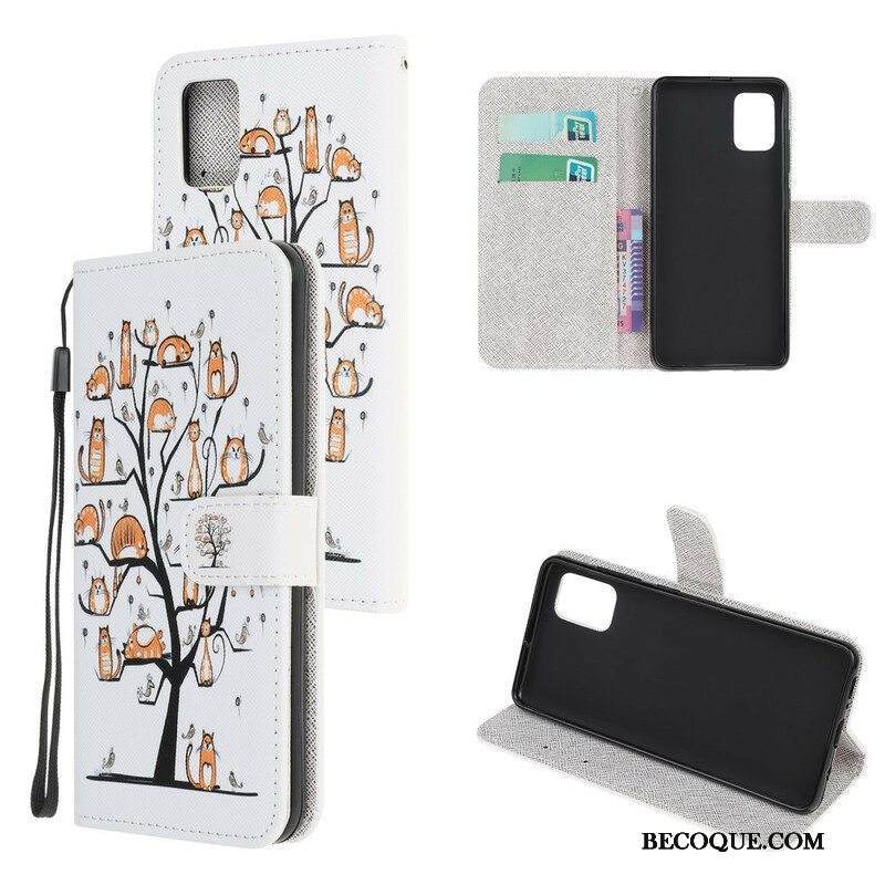 Kotelot Samsung Galaxy A52 4G / A52 5G / A52s 5G Suojaketju Kuori Funky Cats Hihnalla