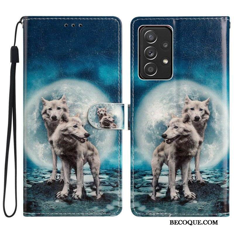 Kotelot Samsung Galaxy A53 5G Moonlight Wolves Kaulanauhalla