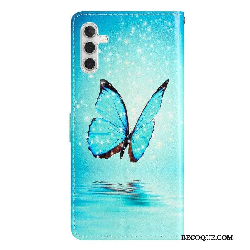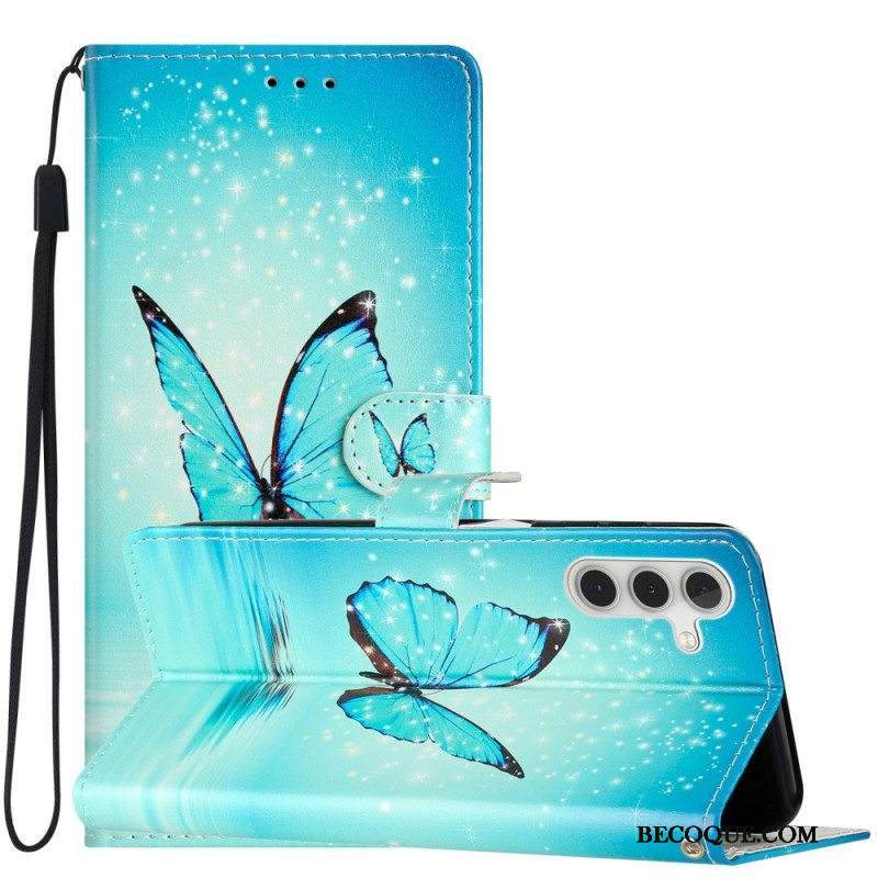 Kotelot Samsung Galaxy A54 5G Suojaketju Kuori Sininen Perhonen Hihnalla