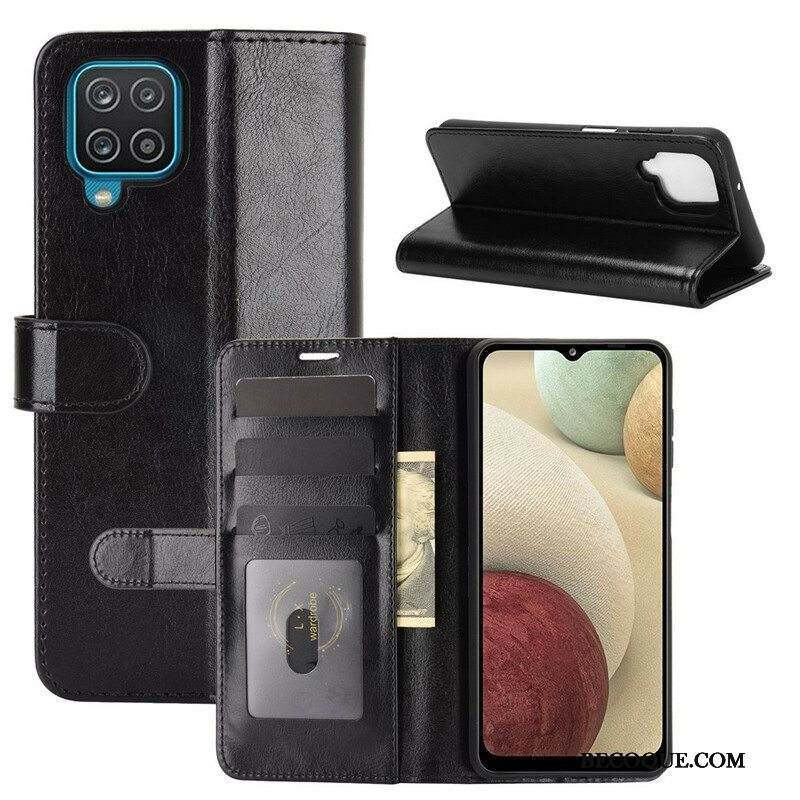Flip Case Samsung Galaxy M12 / A12 Lasitettu Nahkaefekti