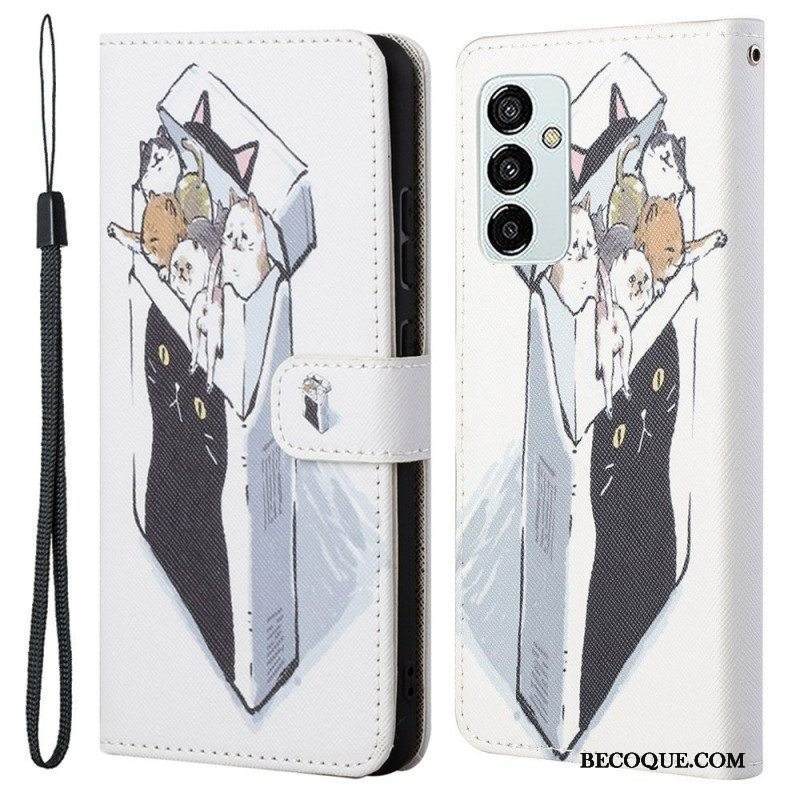 Nahkakotelo Samsung Galaxy M23 5G Grafiikka Kaulanauhalla