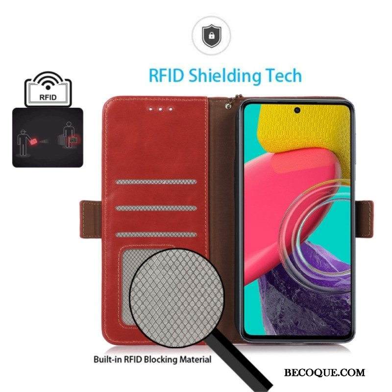 Kotelot Samsung Galaxy M53 5G Aito Nahka Rfid-toiminto