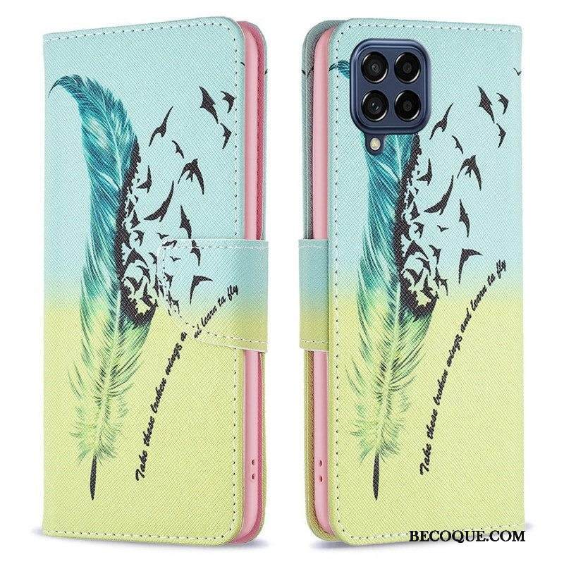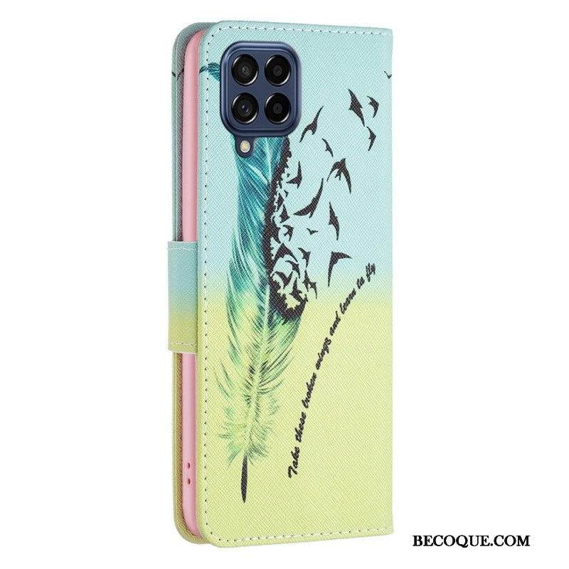 Flip Case Samsung Galaxy M53 5G Kukkia Kaulanauhalla