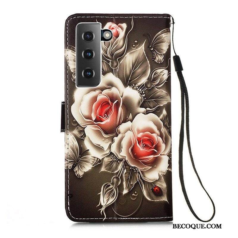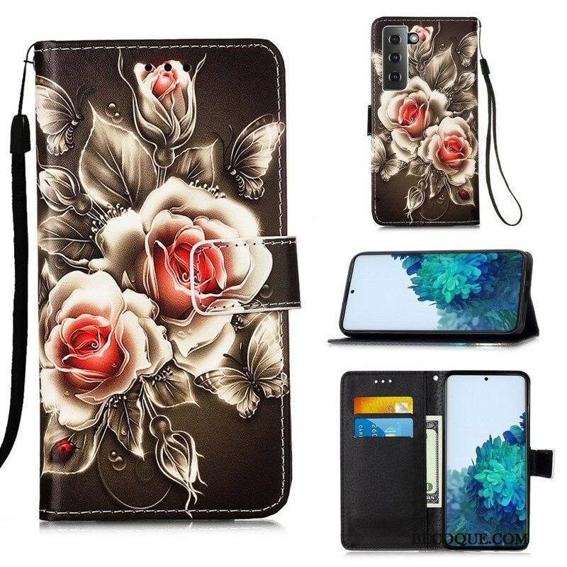 Kotelot Samsung Galaxy S21 5G Suojaketju Kuori Stringit Perhosia Ja Kukkia