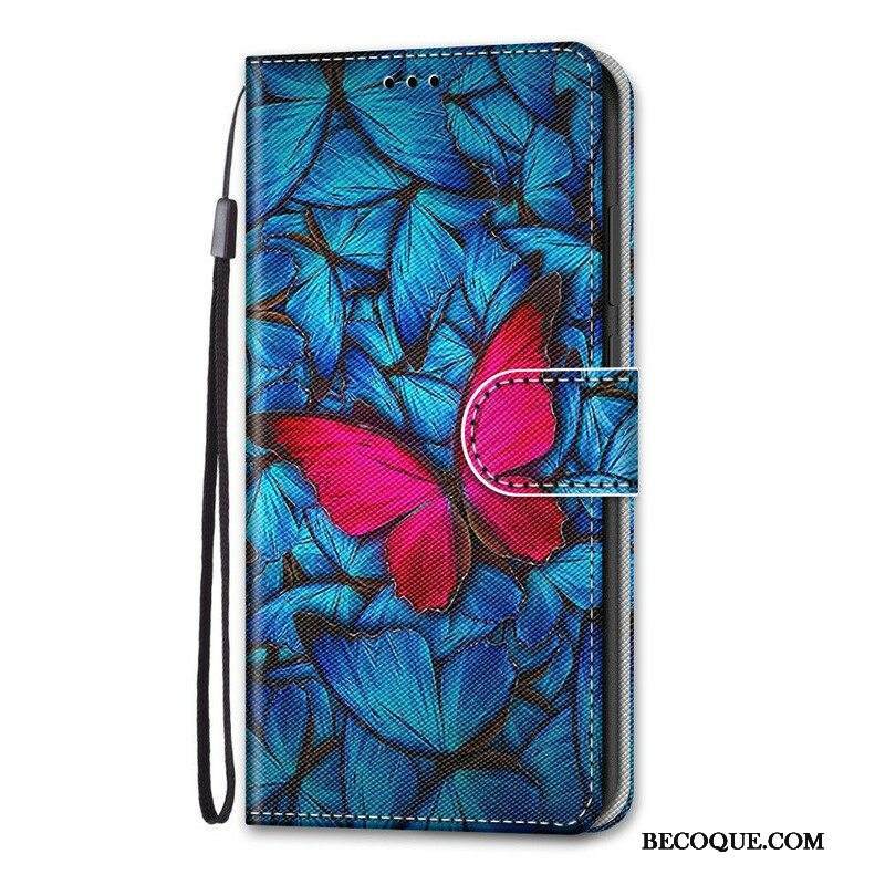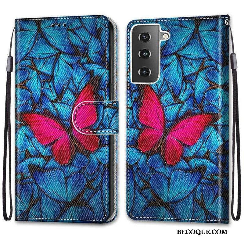 Kotelot Samsung Galaxy S21 5G Punainen Perhonen Sininen Tausta