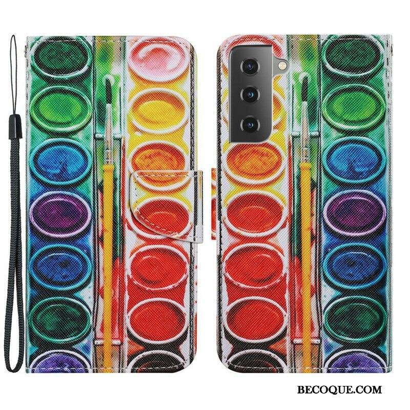 Kotelot Samsung Galaxy S21 FE Suojaketju Kuori Strappy Geo Leather Effect