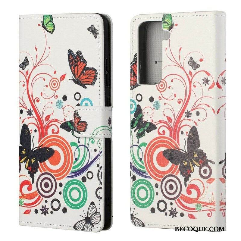 Kotelot Samsung Galaxy S21 FE Perhosia Ja Kukkia