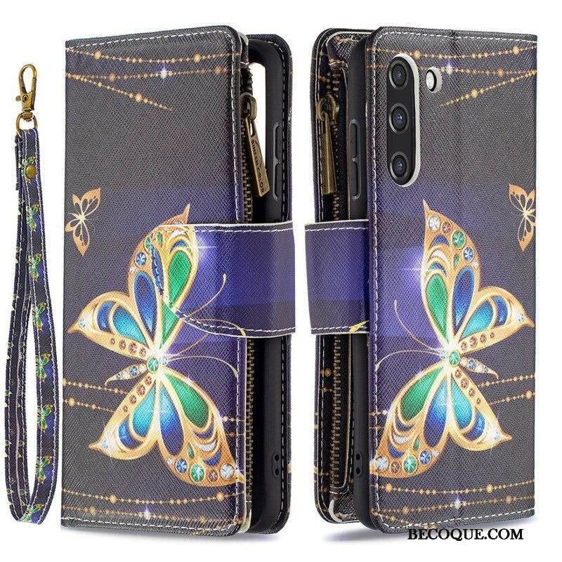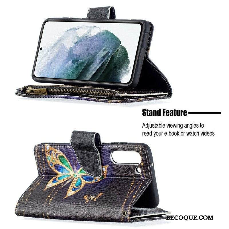 Kotelot Samsung Galaxy S21 FE Perhosten Vetoketjullinen Tasku