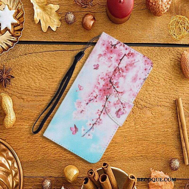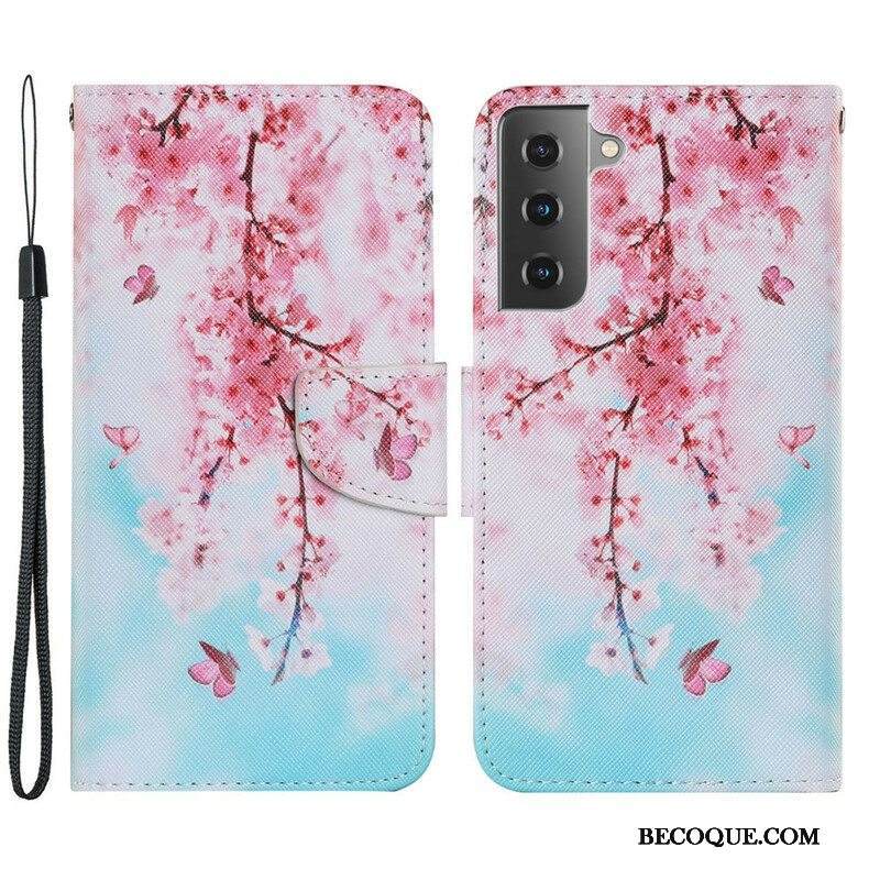 Kotelot Samsung Galaxy S21 FE Suojaketju Kuori Punaiset Oksat Hihnalla