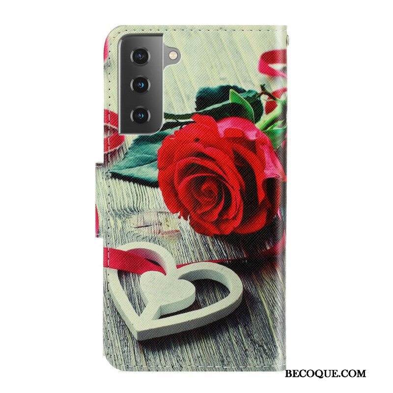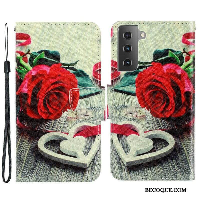 Kotelot Samsung Galaxy S21 FE Suojaketju Kuori Romanttinen Ruusu Hihnalla