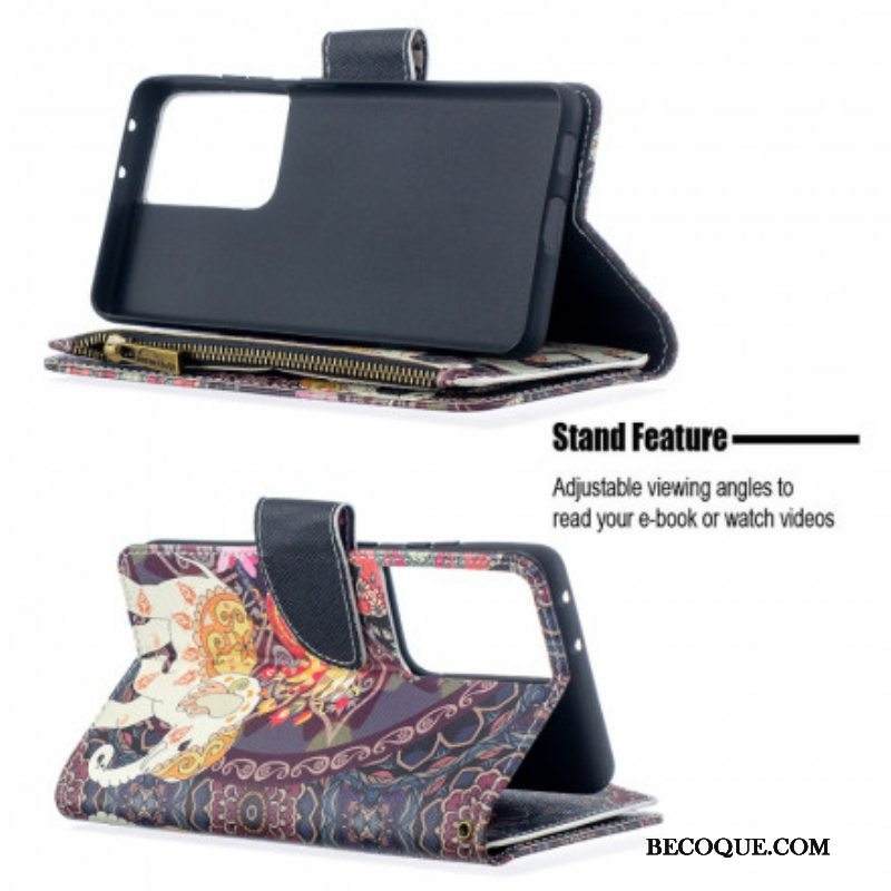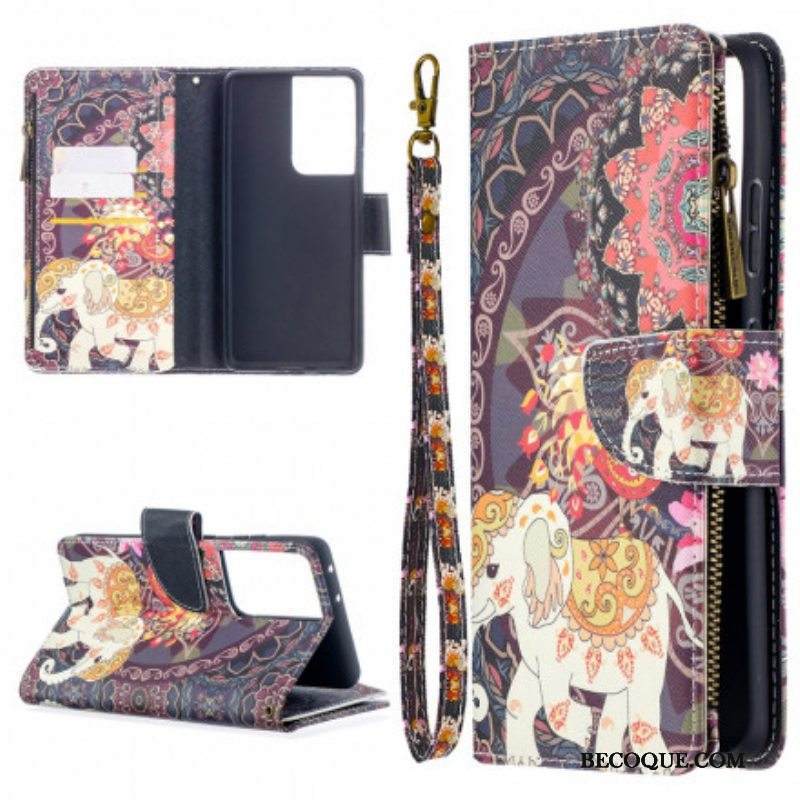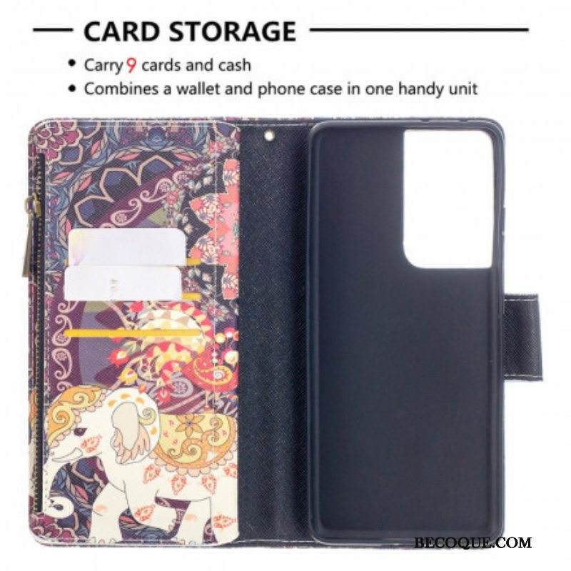 Kotelot Samsung Galaxy S21 Ultra 5G Elephant Vetoketjullinen Tasku