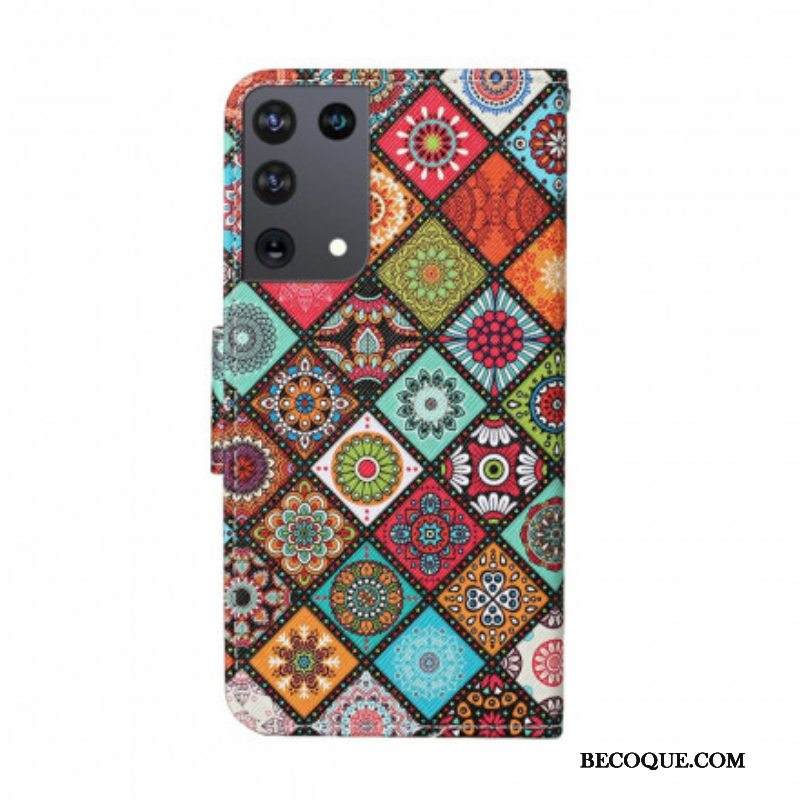 Kotelot Samsung Galaxy S21 Ultra 5G Patchwork Mandalas Kaulanauhalla