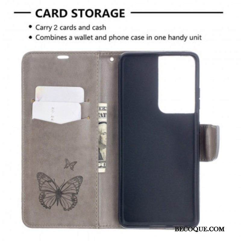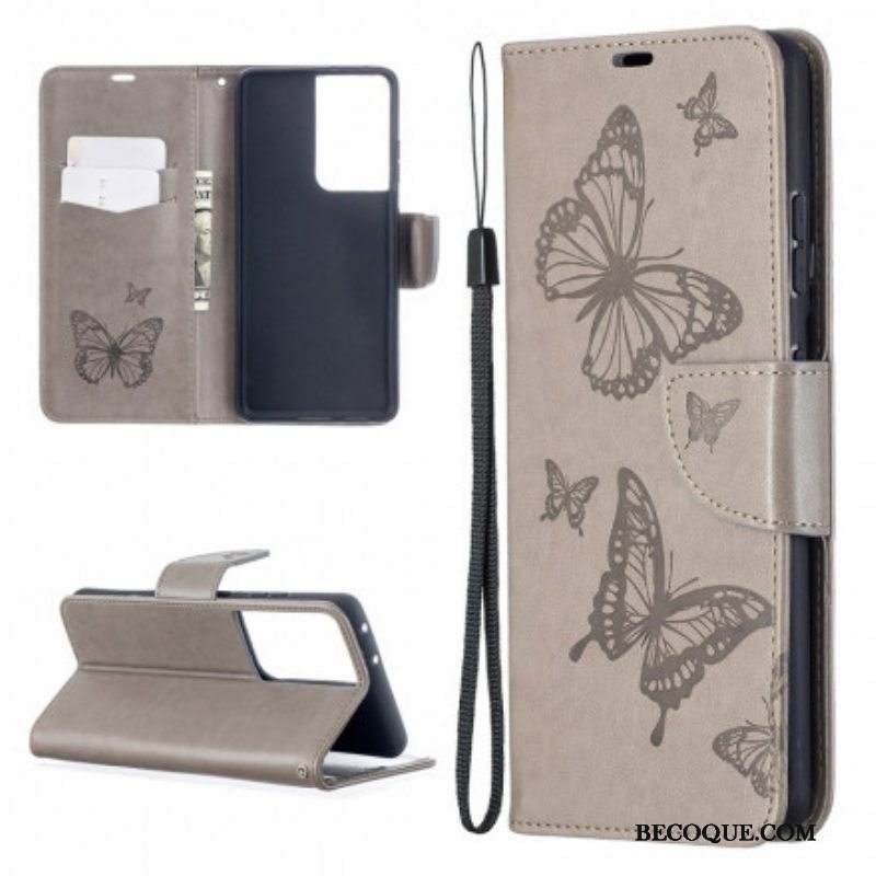 Kotelot Samsung Galaxy S21 Ultra 5G Perhosia Lennossa Lanyardin Kanssa