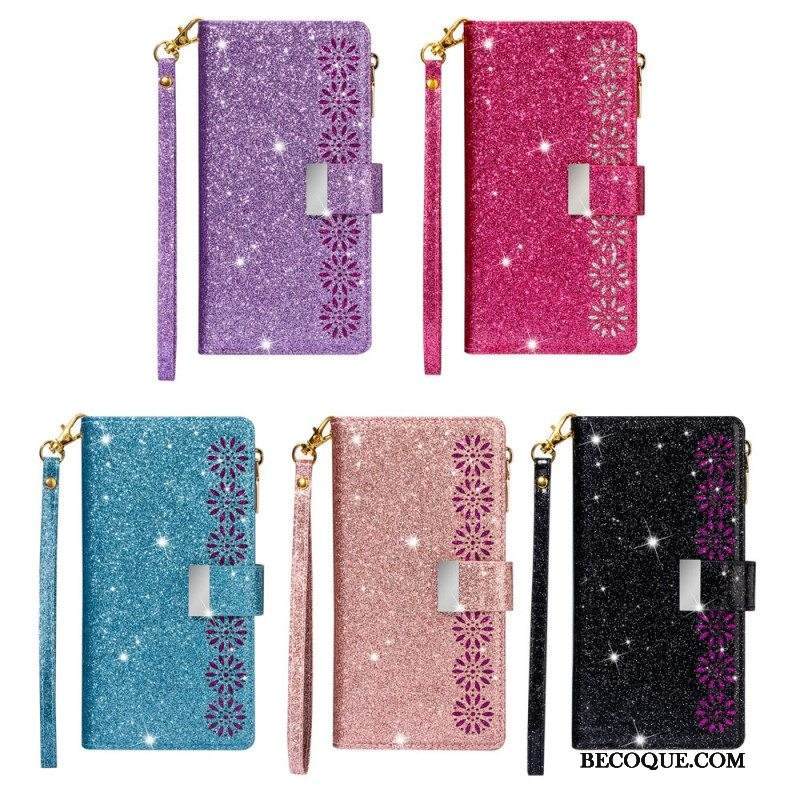 Kotelot Samsung Galaxy S22 Plus 5G Lompakkokotelo Paljetteja Vetoketjullinen Lompakko