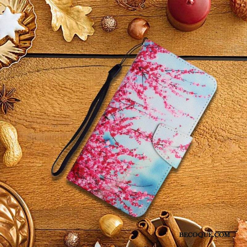 Kotelot Samsung Galaxy S22 Plus 5G Suojaketju Kuori Kukkiva Oksa Hihnalla