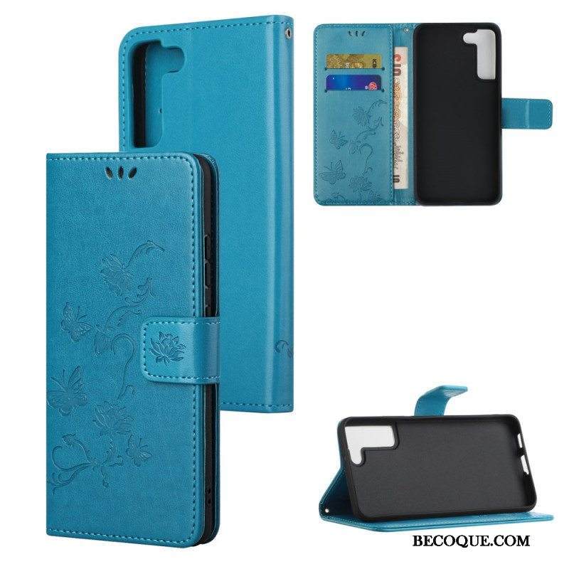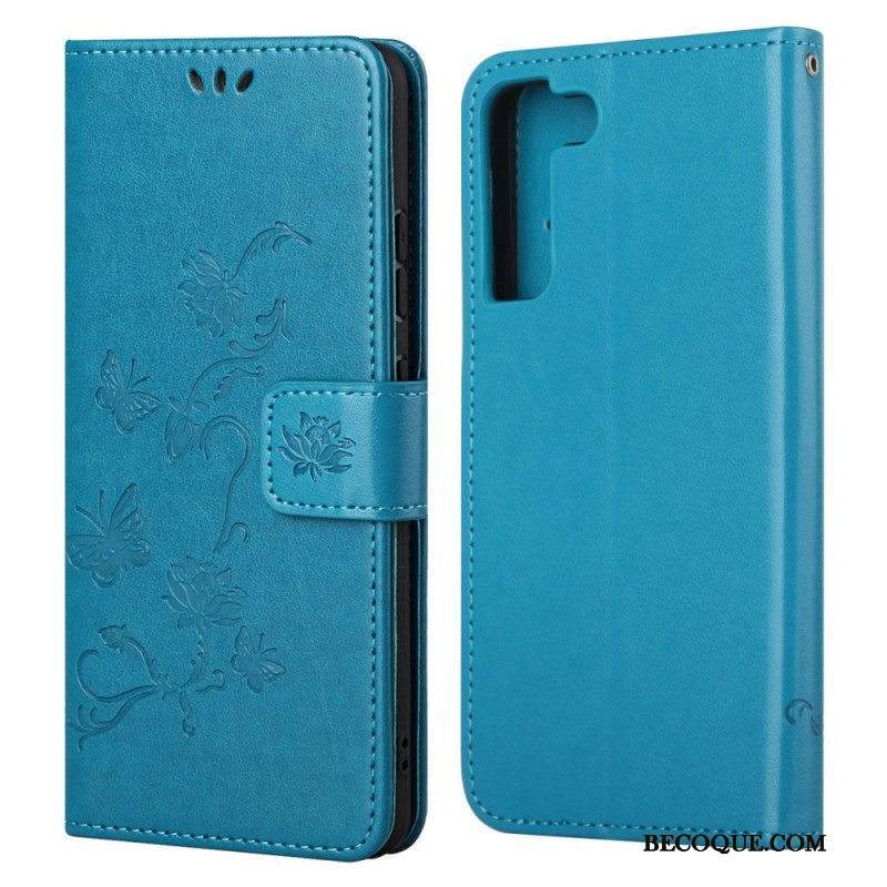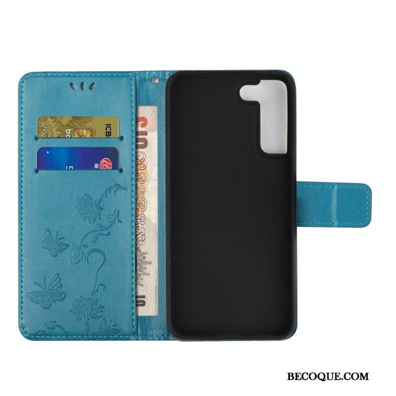Kotelot Samsung Galaxy S22 Plus 5G Suojaketju Kuori Stringit Perhosia Ja Kukkia