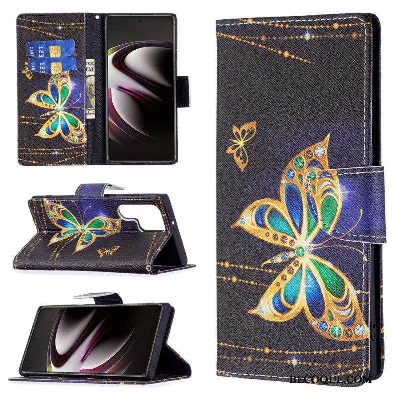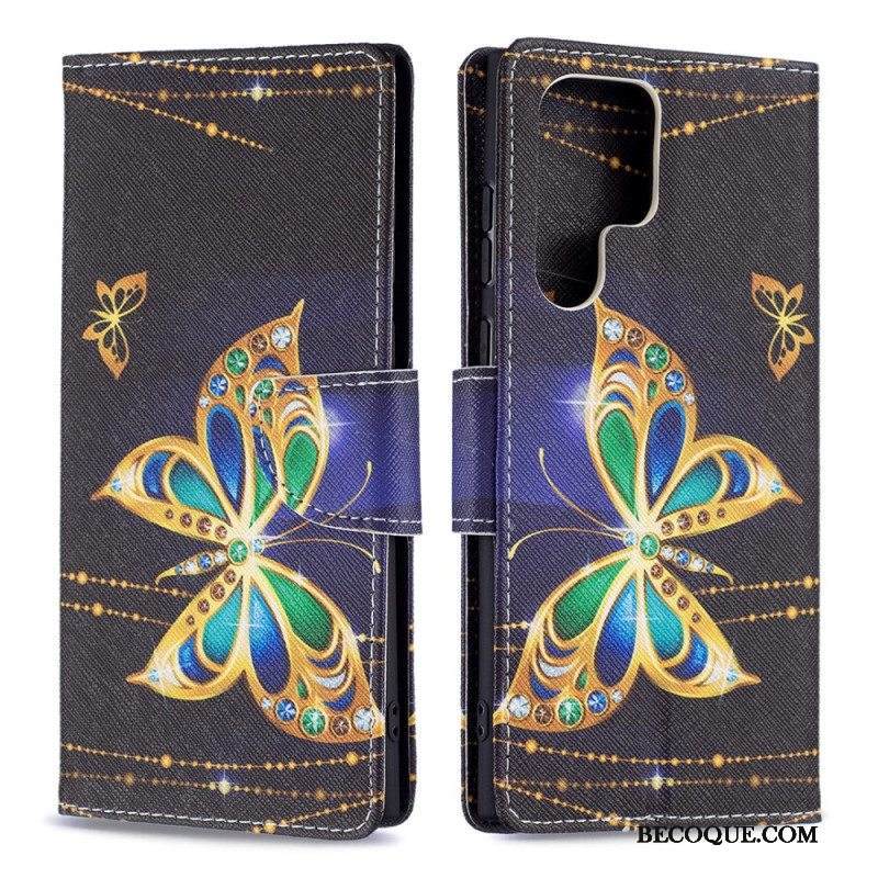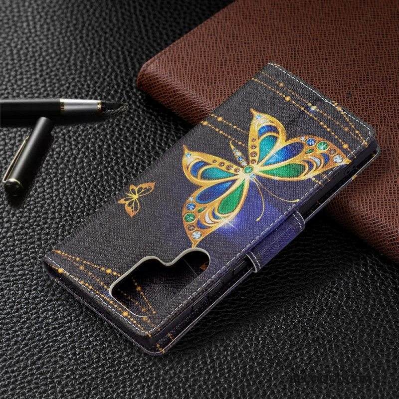 Kotelot Samsung Galaxy S22 Ultra 5G Kultaiset Perhoset