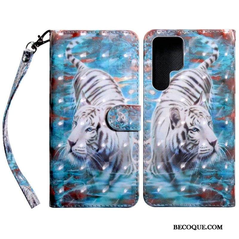 Nahkakotelo Samsung Galaxy S22 Ultra 5G Suojaketju Kuori Värikäs Sulka Hihnalla