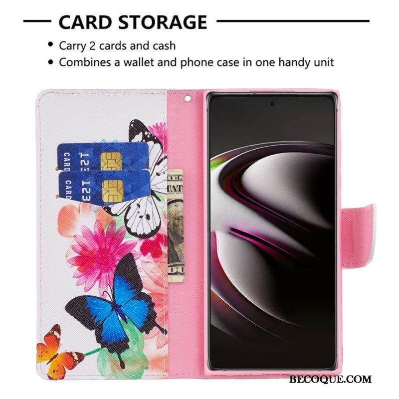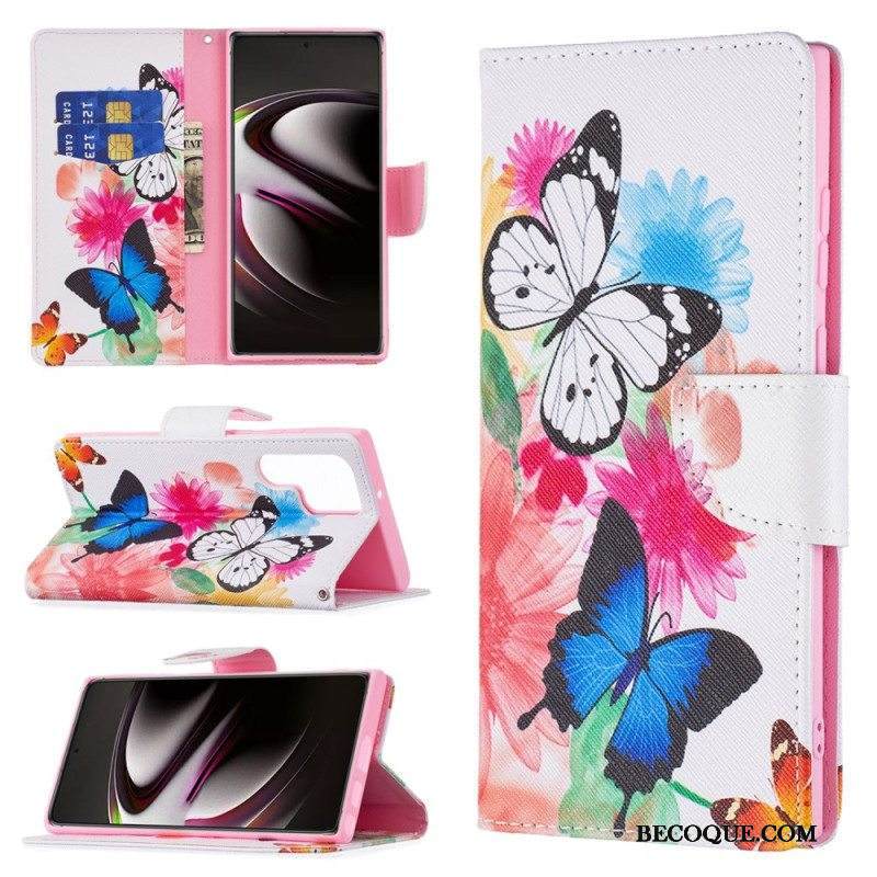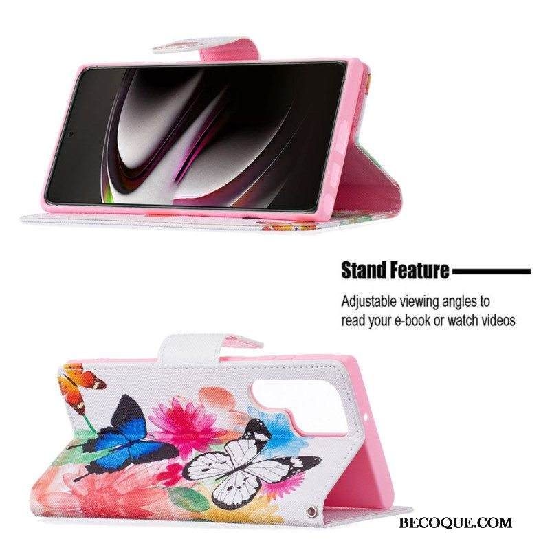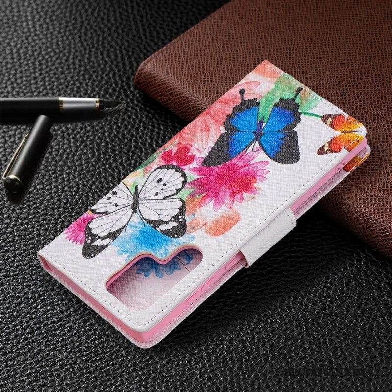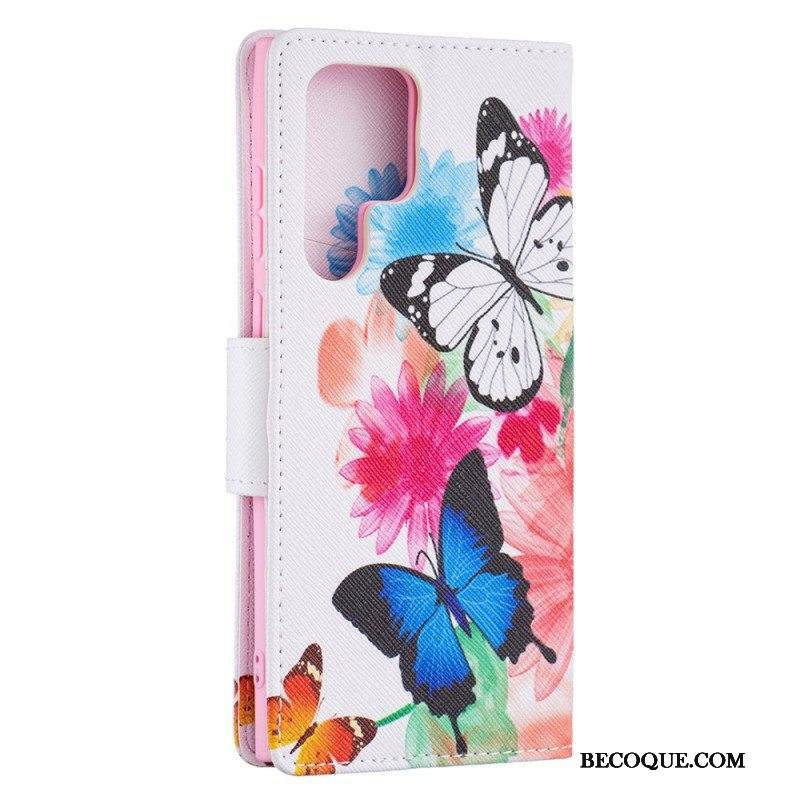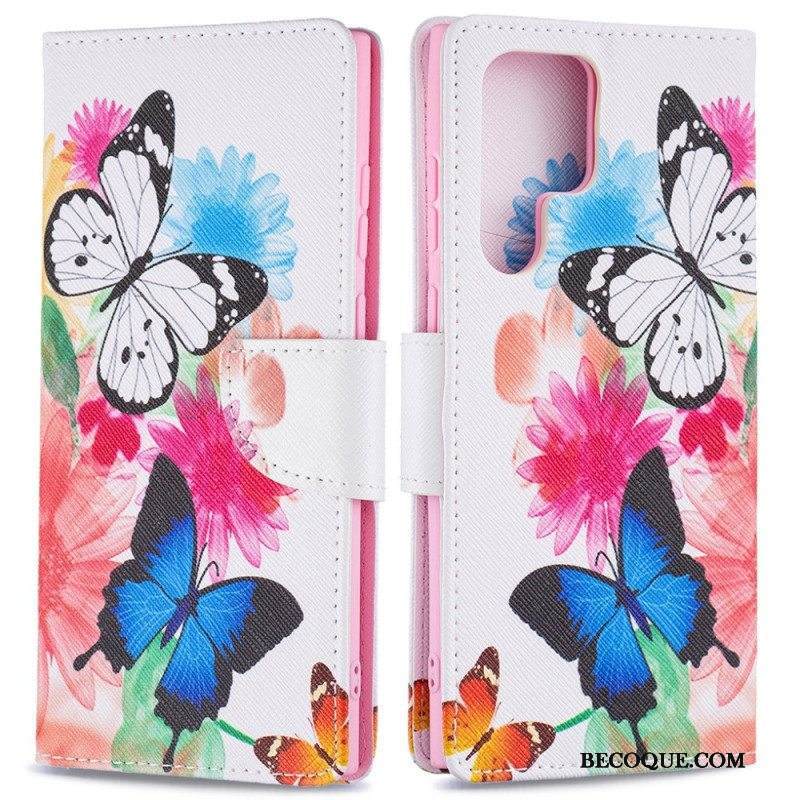 Kotelot Samsung Galaxy S22 Ultra 5G Maalattuja Perhosia Ja Kukkia