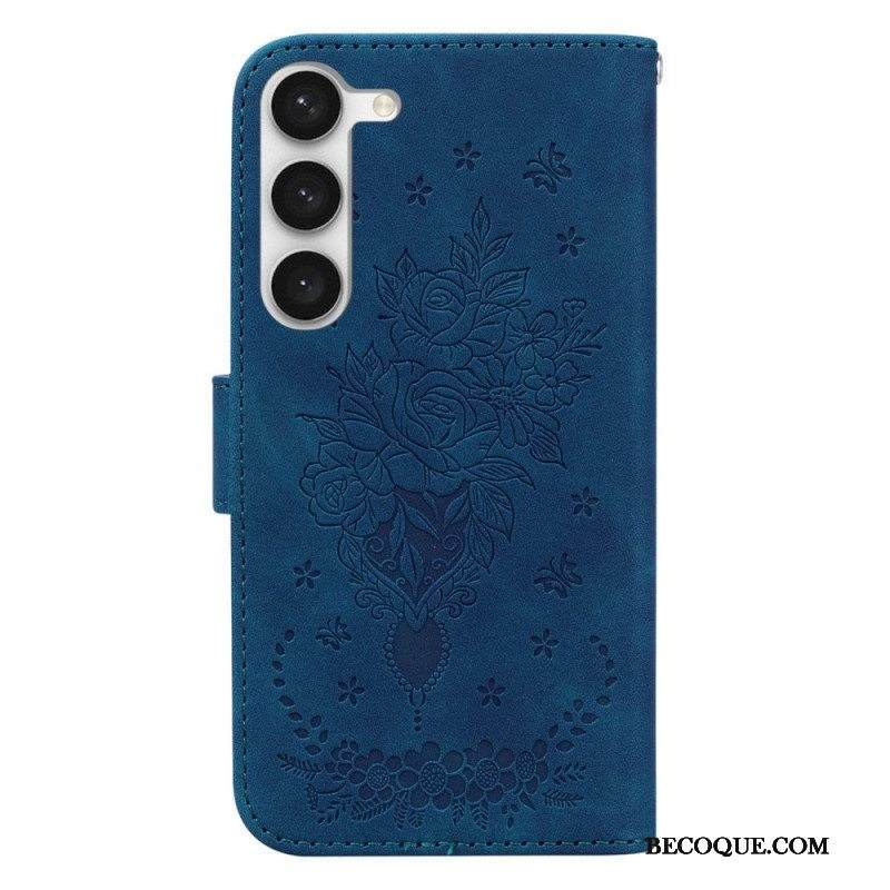 Kotelot Samsung Galaxy S23 Plus 5G Suojaketju Kuori Strappy Ruusut Ja Perhoset