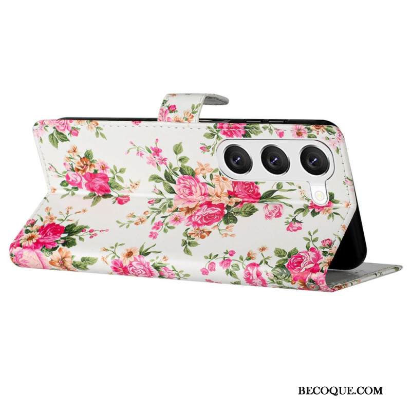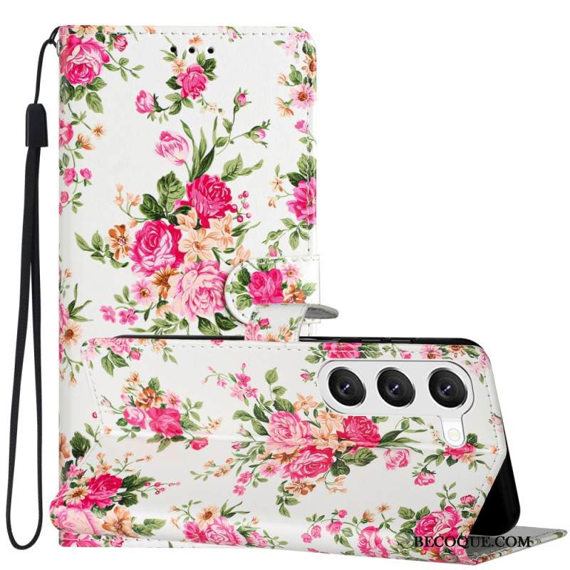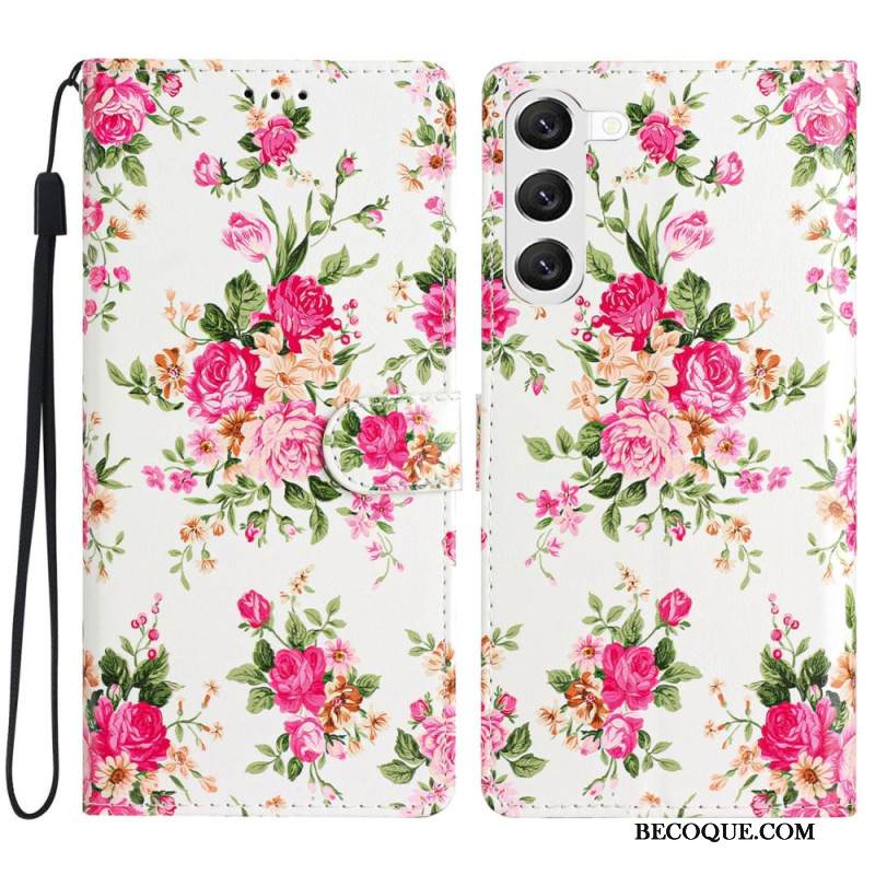 Kotelot Samsung Galaxy S24 Plus 5g Punaiset Kukat Hihnalla