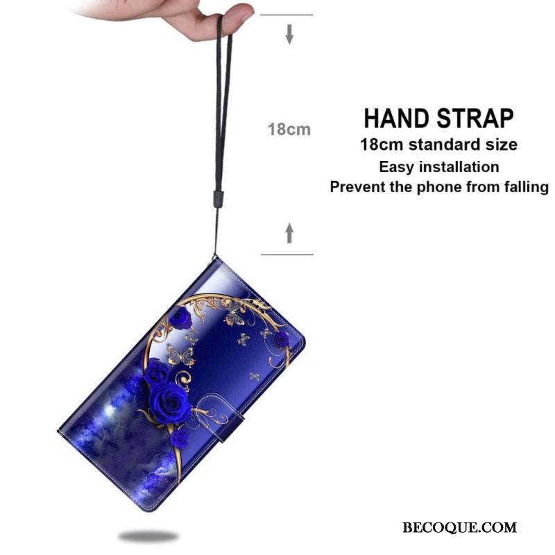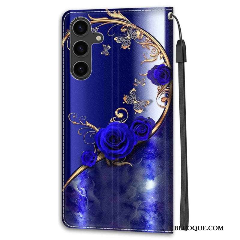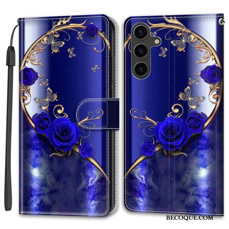 Kotelot Samsung Galaxy S24 Plus 5g Siniset Ruusut Ja Kultaiset Perhoset Hihnalla Suojakuori