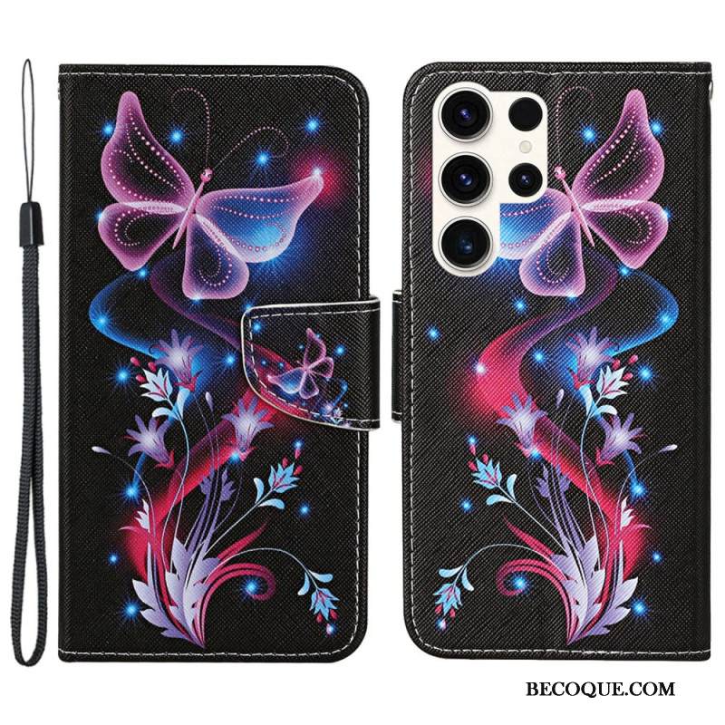 Kotelot Samsung Galaxy S24 Ultra 5g Puhelinkuoret Fluoresoivat Perhoset Hihnalla