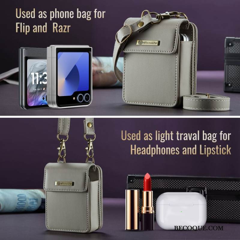 Kuori Samsung Galaxy Z Flip 7 Fe Keinonahkainen Friisi Olkahihnalla Suojakuori