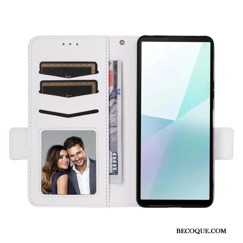 Kotelot Sony Xperia 10 Vi Litchi Texture Kaksoislukko Ja Hihna Suojakuori