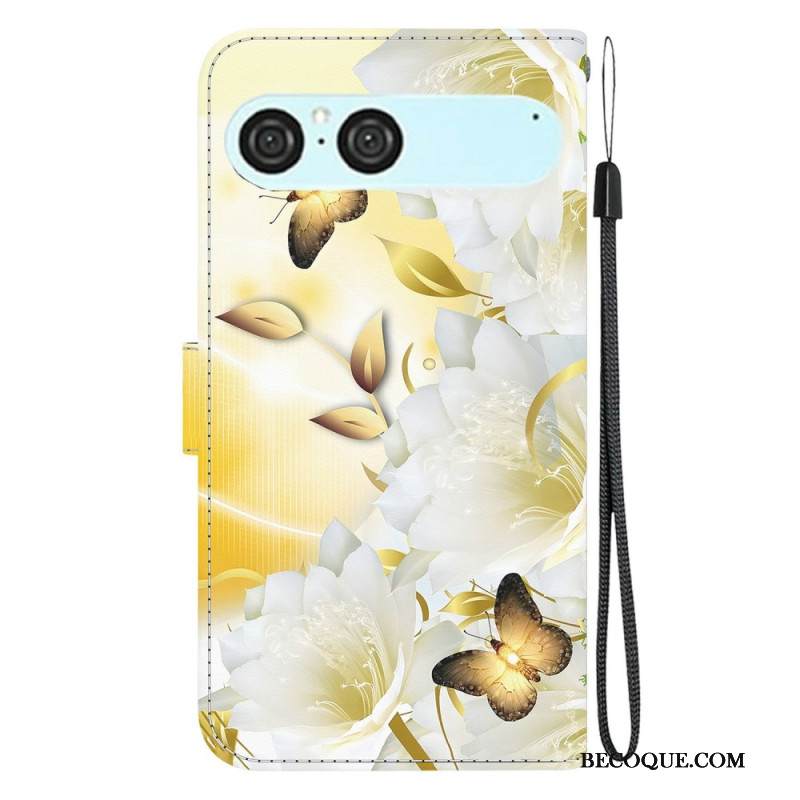 Kotelot Sony Xperia 10 Vii Kultaiset Perhoset Ja Valkoiset Kukat