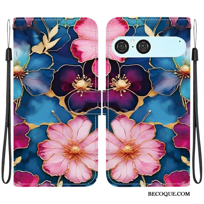 Kotelot Sony Xperia 10 Vii Sininen Ja Kultainen Kukkakuvio